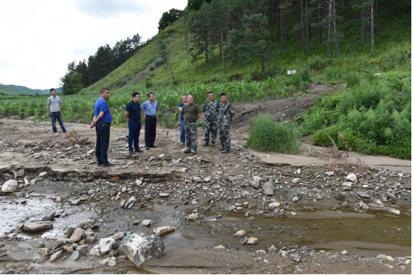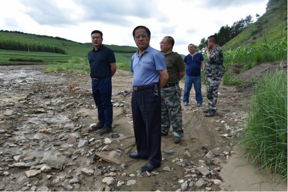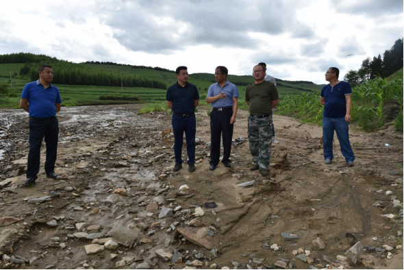 7月9日下午,副市长刘明伟深入下城子镇悬羊七队,实地查看下城子北环线水毁路段情况。市水务局局长唐嵩、交通局局长周坤、下城子镇政府镇长金凤勇等领导陪同。