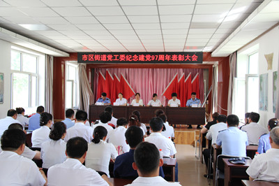 为喜迎中国共产党第97个生日,6月29日下午,市区街道党工委召开庆祝建党97周年暨“七一”表彰大会,以崇高的敬意向党的生日献礼。街区全体党员、辖区派出所党支部、“两新”党总支、居民党员代表等百余人出席此次会议。