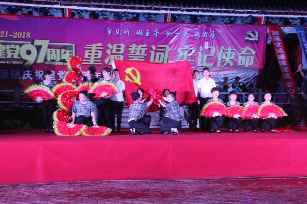 6月30日晚,兴源镇举办以第六届凉台山之夜为主题的纪念建党97周年文艺晚会,镇党员干部、村(居)民共500余人观看了演出。