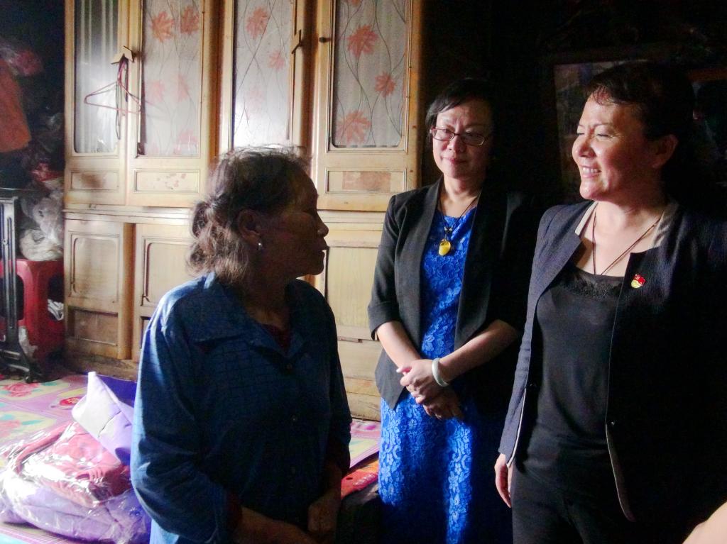 在入户走访贫困人员中,每到一户,褚建华、金兰都关切询问其家庭情况,叮嘱村干部做好帮扶工作,并为贫困女党员、贫困母亲送上了“母亲邮包”。