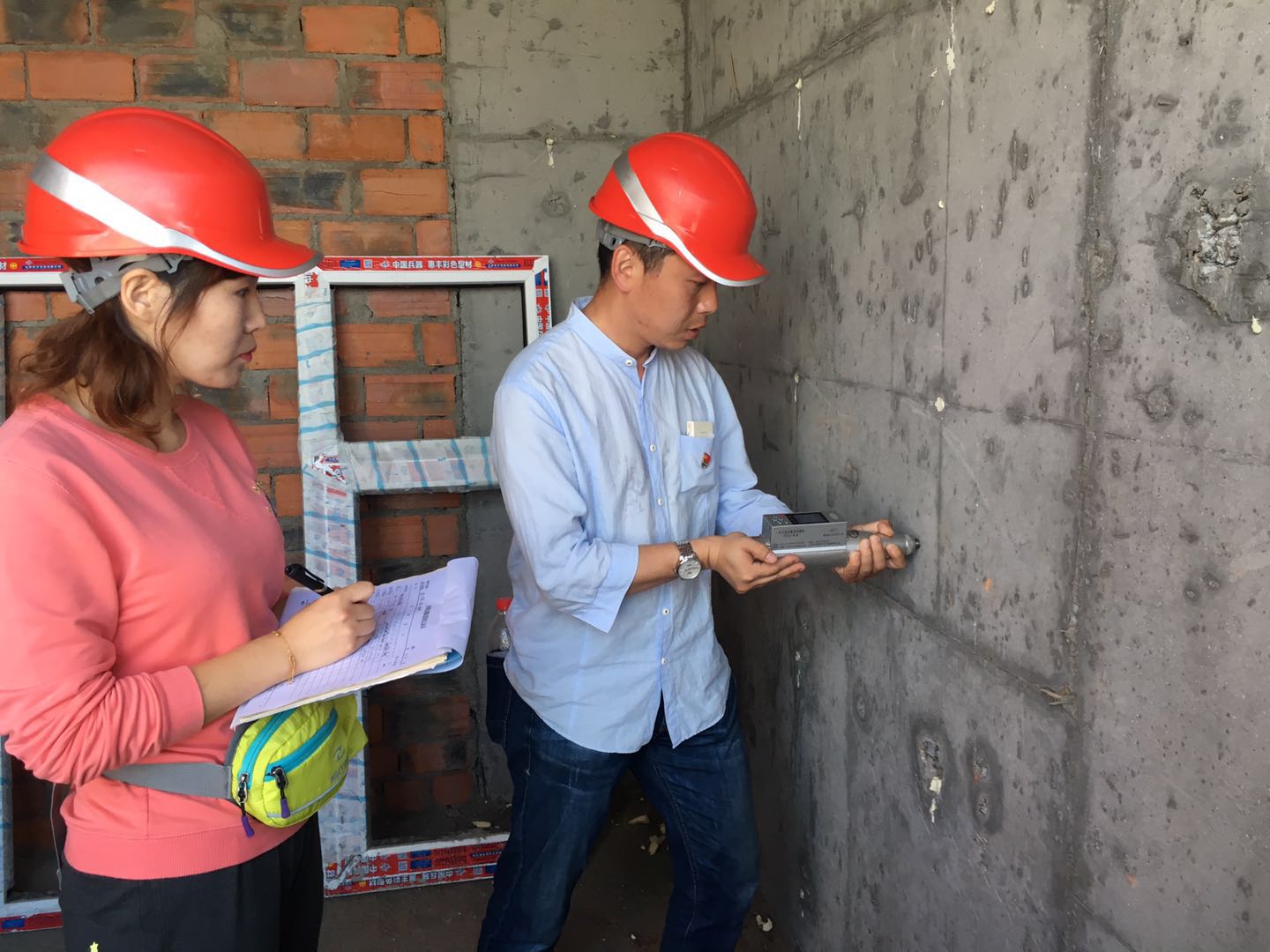本次检查重点为1#、2#、3#楼混凝土构件强度及观感质量。监督员用回弹法测试混凝土强度,抽检的21个混凝土构强度均达到设计标准。
