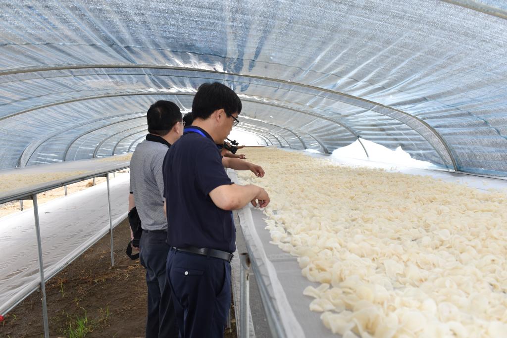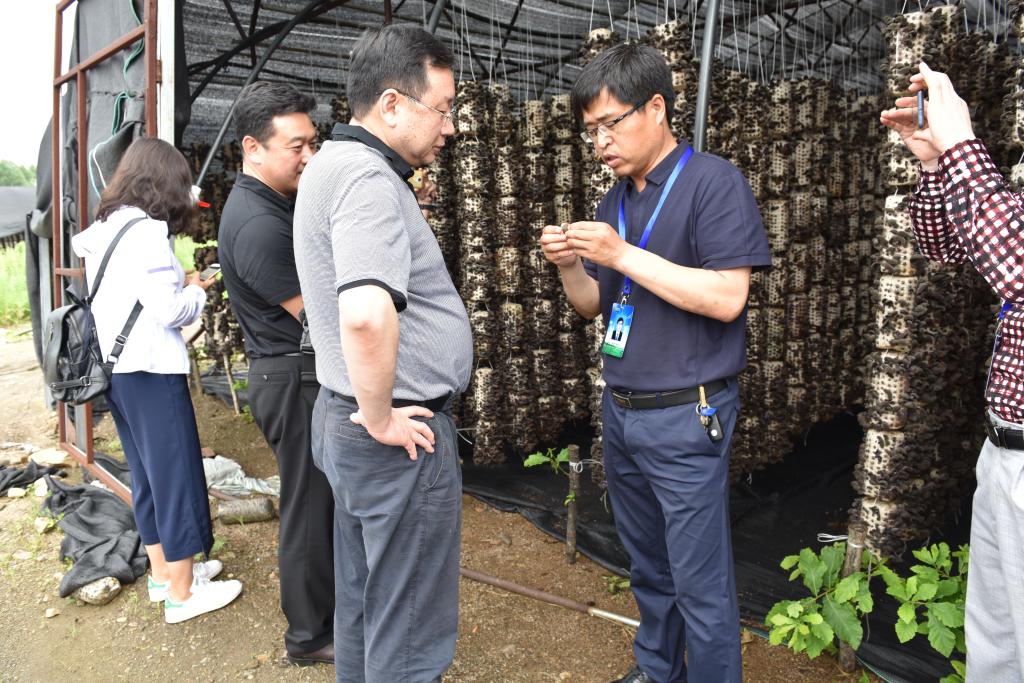 孙邦群一行来到穆棱河流域现代农业示范园区,实地查看园区产业生产情况。在悬羊村食用菌产业园区,检查组详细了解“村+合作社+农户+基地”的生产模式,认为该模式有效地调动了菌农的积极性,提高了农民收入。在一林东北山产品公司,检查组对该企业自主研制的白玉石木耳产生了浓厚兴趣,详细询问了白玉木耳的营养价值、产值、功效以及生产流程,参观了基地的实验室、生产车间、运料车间。最后,检查组来到穆棱市禾润生态种植基地,实地查看了解基地蔬菜品种产量、经济效益、销售渠道、技术引进等方面情况。