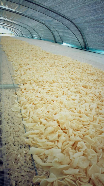 今年由黑龙江省一林有限责任公司自主研发的白玉木耳落户穆棱河流领域食用菌产业带,今年试种植大棚40栋,50万袋,现已采摘两茬,试种植喜获成功。